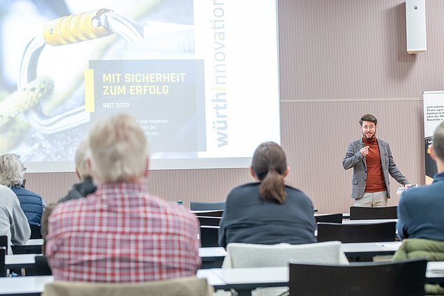 Der Vorstand von Metaltec Aargau hat sich zudem Gedanken gemacht, wie die Herbstversammlung mehr Gewicht bekommen und dadurch auch wieder mehr Mitglieder anziehen könnte. Eine Massnahme ist, dass die Patronatspartner an der Herbstversammlung die Möglichkeit erhalten, ihre Firma kurz vorzustellen. Diese Gelegenheit nutzte gestern die Firma Würth Innovation AG. Sie führt in Olten die Kurse im Staplerfahren, Anschlagen von Lasten, PSA gegen Absturz und Hubarbeitsbühne durch, welche die Lernenden aus der Metall- und Stahlbaubranche neuerdings absolvieren müssen.