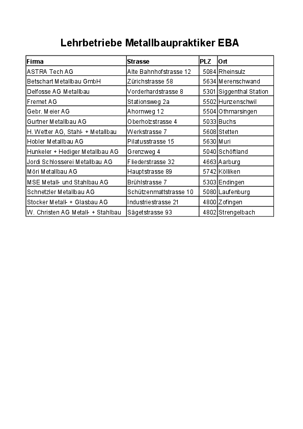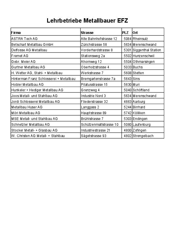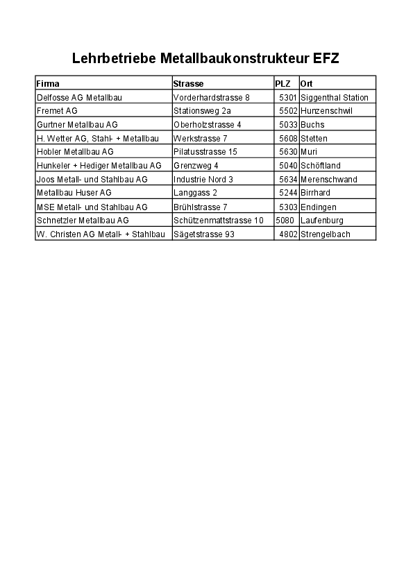 Lehrbetriebe Metallbaukonstrukteur EFZ